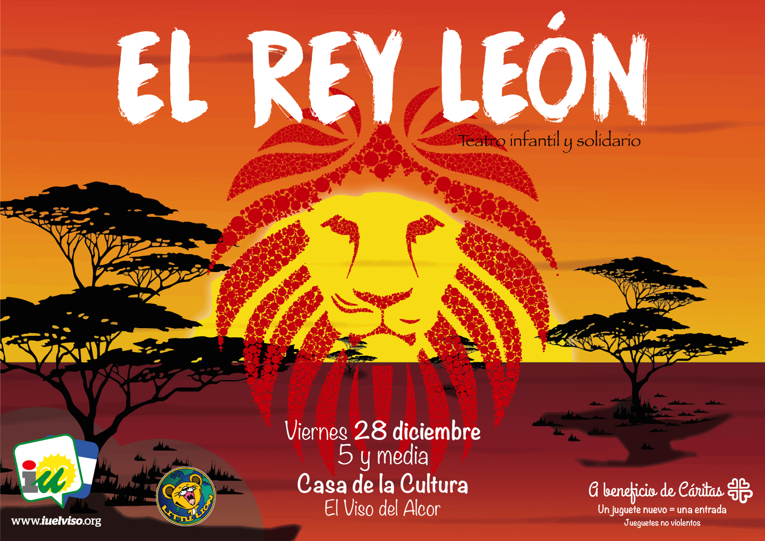 Ya está aquí la octava edición del teatro infantil y solidario que organizamos para divertir a nuestros pequeños y pequeñas de la casa. En esta ocasión contamos con la representación de la obra "El Rey León", contada por la compañía "Little Lion". Como siempre, la entrada se podrá adquirir en taquilla a cambio de un juguete no violento, que irá destinado a la campaña de Navidad de Cáritas.