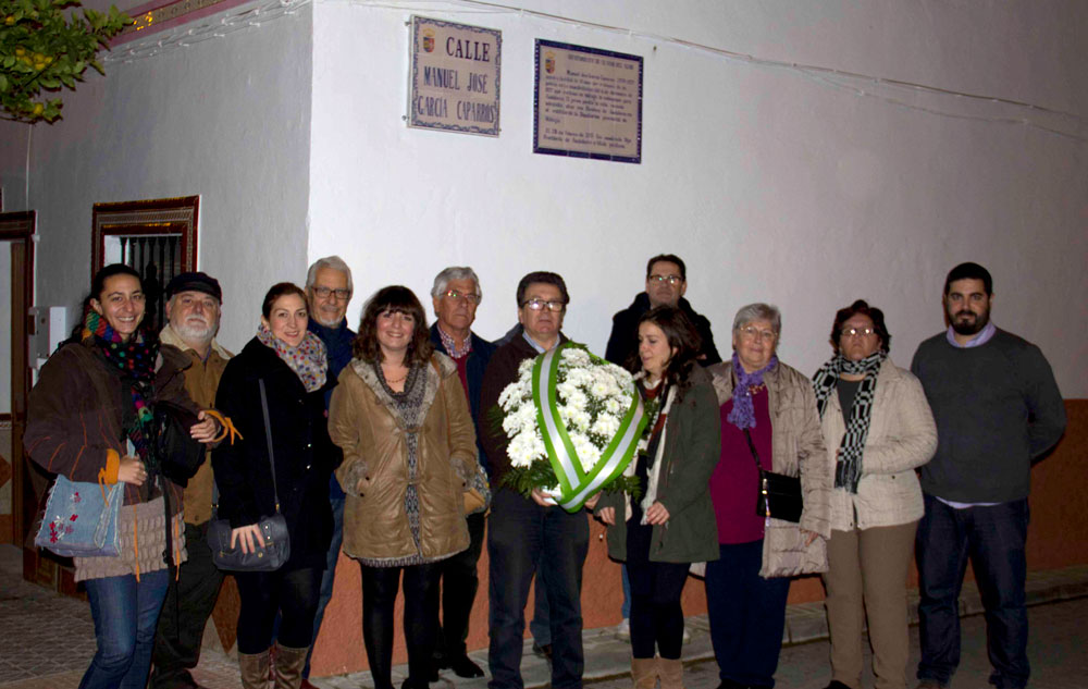 El pasado 15 de diciembre, además de la proyección del documental sobre la vida y asesinato de Manuel José García Caparrós, realizamos una ofrenda florar en la placa que el Ayuntamiento colocó, a propuesta de nuestro Grupo Municipal, para conmemorar su nombramiento como hijo predilecto de Andalucía en 2013.