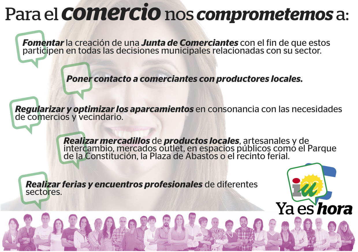 El comercio local es el más importante ya que es el que repercute directamente en el propio pueblo, además de ser generador de empleo y quien, a fin de cuentas, está sosteniendo la economía de nuestro país. Consumir en tu localidad no solo ayuda a crear empleo cercano, también ayuda a la economía general de tu pueblo. Por eso desde Izquierda Unida tenemos como prioridad trabajar para aumentar el comercio y el consumo local poniéndolo como eje vertebrador de la creación de empleo y el empoderamiento del sector empresarial.