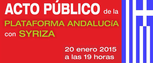 El domingo que viene serán las elecciones generales en Grecia. Syriza, el Partido de la Izquierda Radical, que tiene los mismos orígenes que Izquierda Unida y funcionan de forma parecida, da como claro vencedor en todas las encuestas. Desde Andalucía se ha constituido una Plataforma Andalucía con Syriza para mostrar el apoyo del pueblo andaluz a esta formación que traerá cambios no solo a Grecia, también al resto de Europa.