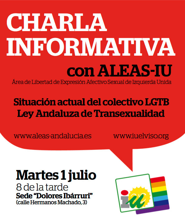 ALEAS-IU es el Área de Libertad de Expresión Afectivo Sexual de Izquierda Unida que trabaja por los derechos de lesbianas, gays, transexuales, bisexuales e intersexuales. Contaremos con la presencia de su coordinador provincial de Sevilla para que nos explique qué hacen desde el área, cuál es la situación actual del colectivo LGTB y de la Ley Andaluza de Transexualidad.