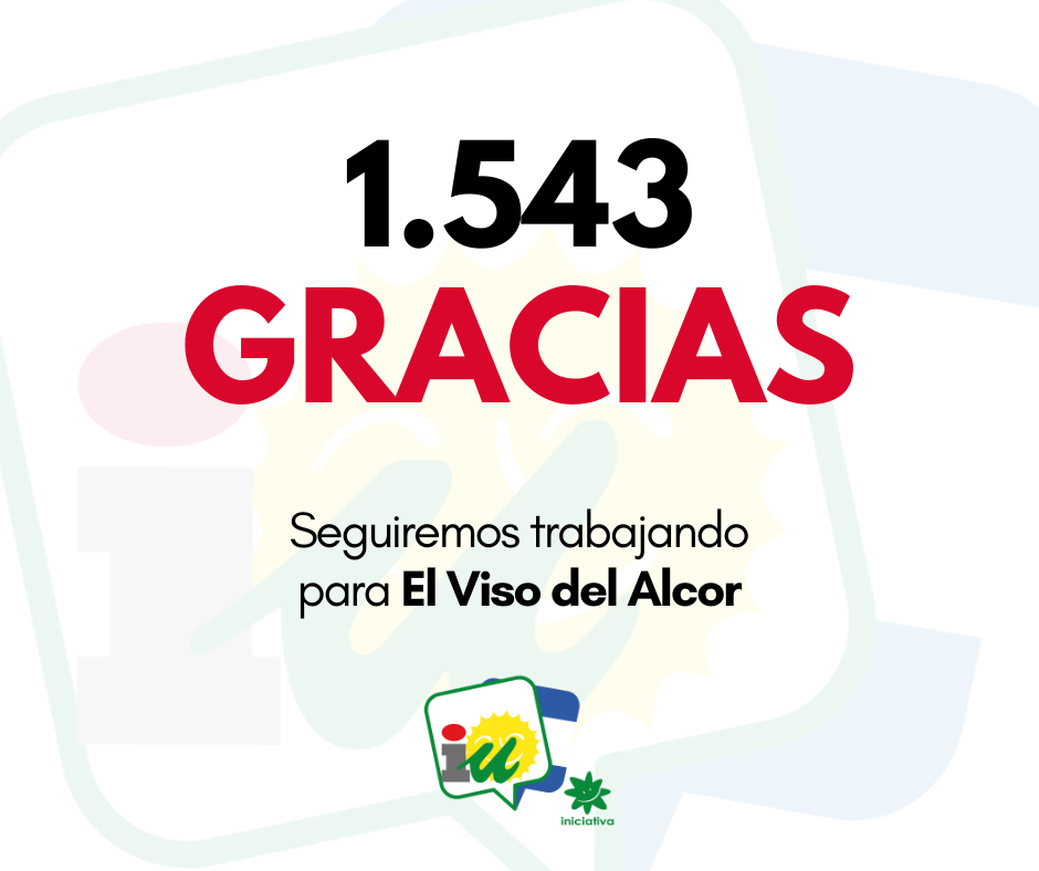 Ya han pasado varios días desde el 28M, día de las Elecciones Municipales, y en IU El Viso hemos hecho un análisis de los datos obtenidos; ahora es cuando estamos en disposición de dar las gracias, concretamente, 1.543 gracias.