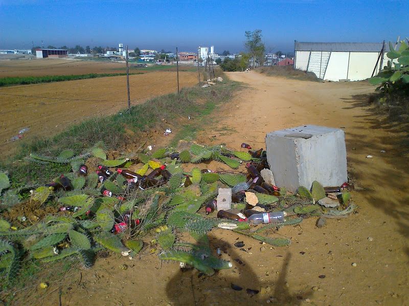Varios vecinos que suelen pasear por la zona nos han remitido estas fotos donde se aprecia que el camino que sube a La Santa, frente a Muebles Sastre está cortado por una serie de basuras como desechos vegetales, litronas, piedras y un bloque de hormigón con la clara intención de cortar el paso.