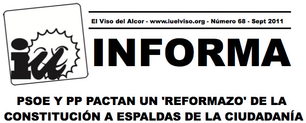 Número 68 de nuestro boletín IU Informa. En este caso hablamos del reformazo de la Constitución Española donde el PSOE y el PP quieren introducir una modificación que le dicta directamente el mercado y los grandes capitales. Además varios sabías qué y la elección de un nuevo Consejo Político.