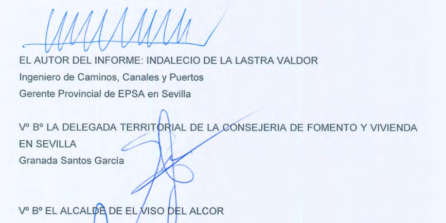 Y este es el informe que se incluye a esa carta donde se pide el arreglo del arroyo, que al final tiene las firmas del ingeniero de caminos que hizo el informe, la firma de Granada Santos y la del alcalde, repetimos, de agosto de 2013: