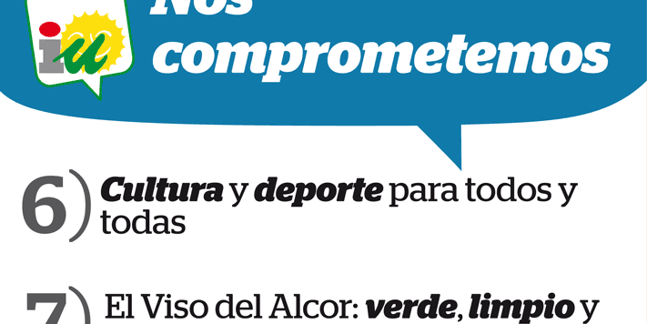 Desde IU hemos trazado unas líneas que guiarán estas propuestas. Unas ideas generales que reflejan, sin lugar a dudas, la forma de gobernar que tendrá IU. Ideas que la ciudadanía se encargará de perfilar y concretar. Diez son estas líneas generales que moverán nuestro próximo gobierno, diez líneas para hacer de El Viso del Alcor un pueblo donde vivir mejor. Diez ideas que iremos desgranando en sucesivas ruedas de prensa.