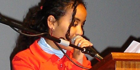 Enguía, niña saharaui, leyendo la carta a sus padres