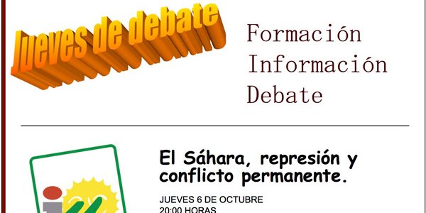 Comenzamos este jueves 6 de octubre de 2011 con una actividad propuesta por uno de nuestros afiliados, tener cada jueves un debate sobre algún tema de interés, ya sea local o más amplio. Esta primera vez lo hemos querido dedicar al conflicto del Sáhara.