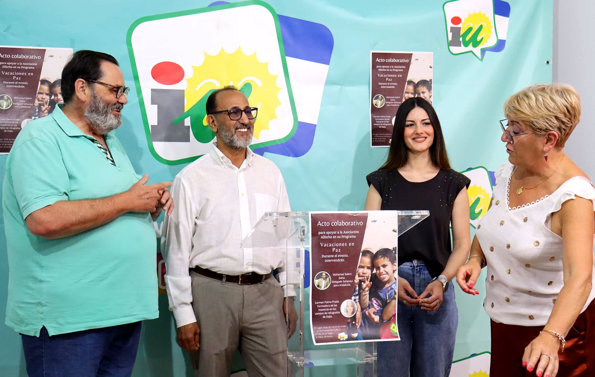 En el día de ayer, celebramos en nuestra sede un acto de apoyo y colaboración con el programa Vacaciones en Paz que la Asociación Alfarha viene haciendo desde hace unos años. Desde IU siempre al lado del pueblo saharaui colabora desde el principio con este programa y este año no podía ser menos. Hemos aportado el equivalente a un viaje de un niño desde los campos de refugiados en el desierto del Sáhara, hasta nuestro pueblo, a pasar el verano.